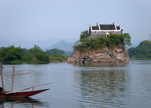 香零山為天然石磯結(jié)構(gòu),地處中流,隨瀟水水勢(shì)而展現(xiàn)不同的風(fēng)光,勢(shì)浩蕩則如汪洋中之一小舟,水勢(shì)弱小則島亭昭然挺立。若雨后日出,煙鎖山腳,霧雨朦朧,往來(lái)舟楫,若隱若現(xiàn),給人一種煙波浩渺的意境,因而有“香零煙雨”之稱,為永州八景之一。