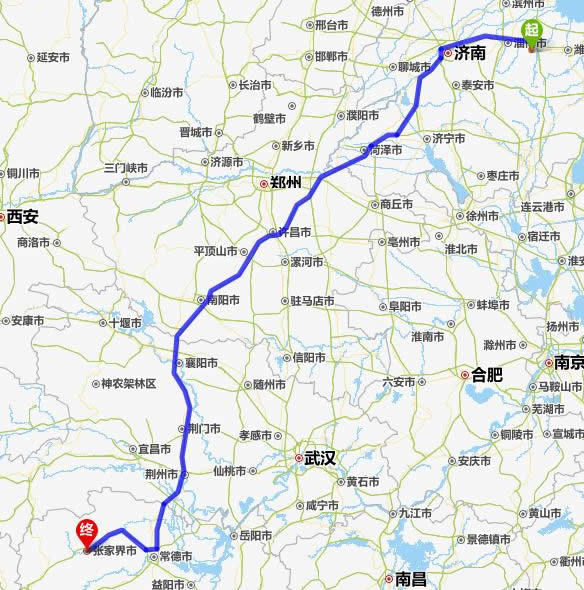 青州去張家界自駕車(chē)自助游線路圖全程高速):