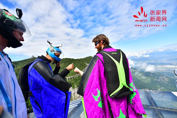 2017世界翼裝飛行世錦賽將于9月8日-10日在張家界天門(mén)山舉辦。開(kāi)賽在即,9月7日上午,來(lái)自全球11個(gè)國(guó)家的16名翼裝飛行員從海撥1458米的張家界天門(mén)山玉壺峰頂一躍而下,在奇峰險(xiǎn)壑間進(jìn)行競(jìng)速訓(xùn)練。